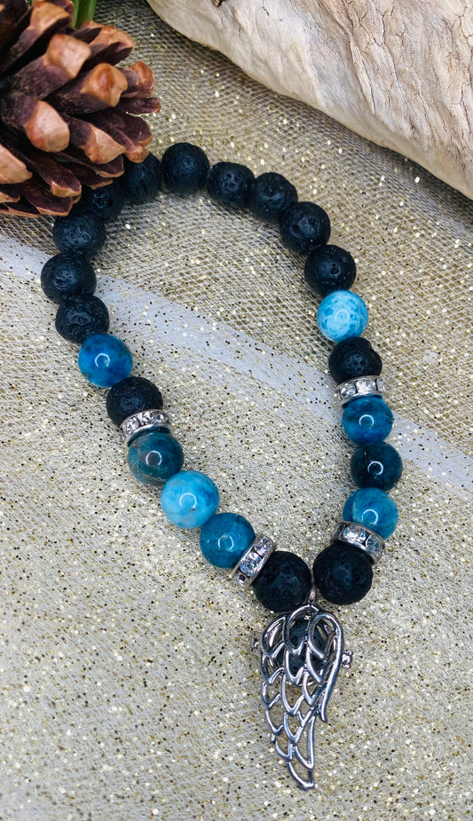 Tranquil Guardian Aromatherapy Apatite & Lava Bracelet with Angel Wing Charm