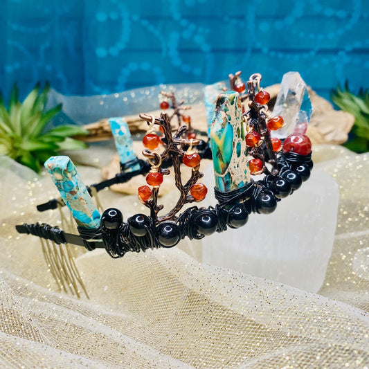 Tiger Eye, Herkimer Diamonds & Black Tourmaline Crown