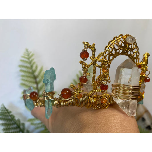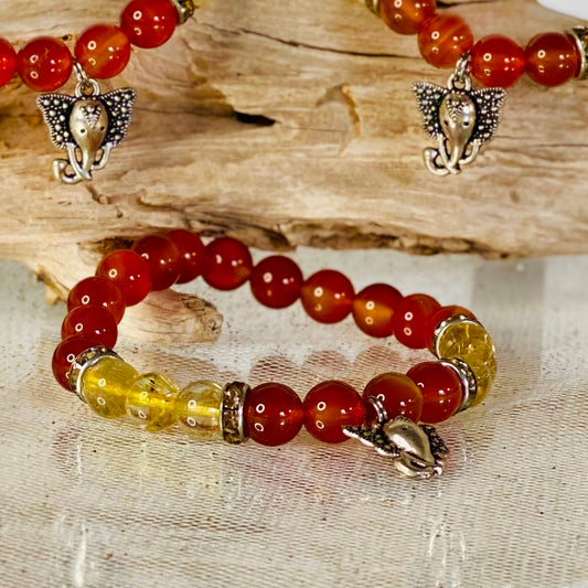 Prosperity and Protection Carnelian & Gold Rutilated Quartz Bracelet with Ganesha Charm