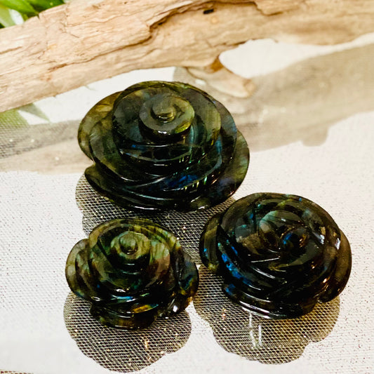 Meticulously Carved Labradorite Crystal Rose for Enhanced Intuition