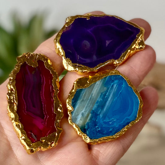 Gold Trimmed Agate Slice: Nature's Artistry in Gilded Elegance - Small