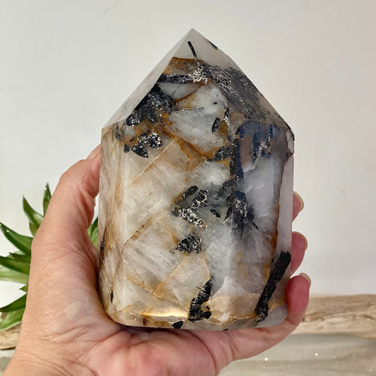 Golden Healer & Black Tourmaline Tower Quartz Crystal: Energize, Protect, and Transform