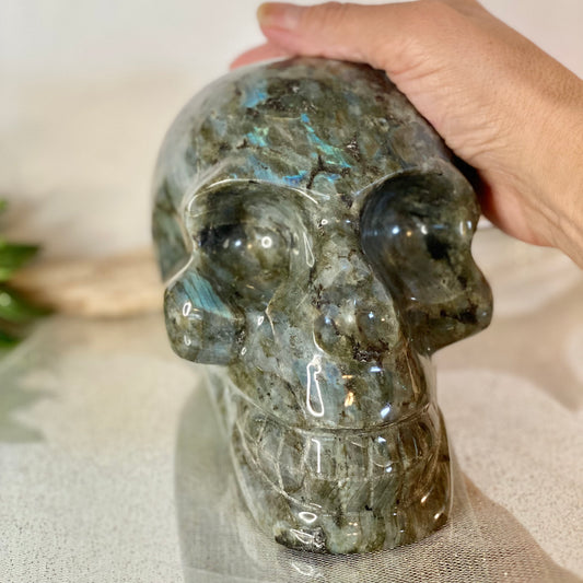 Labradorite Crystal Skull - 9.9 lb Hand-Carved Gemstone for Energy and Transformation