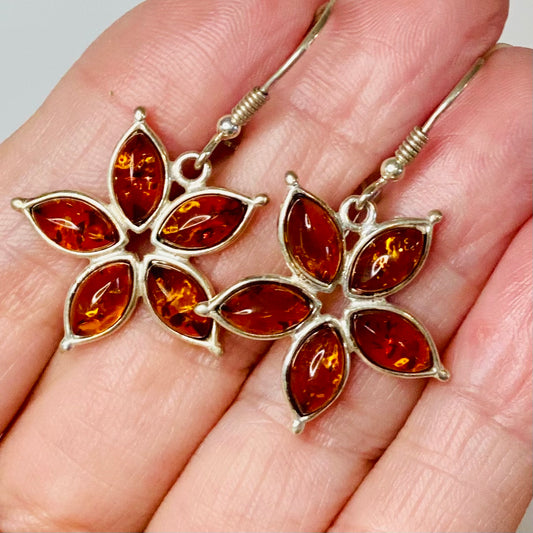 Sterling Silver Amber Flower Earrings: Blossoms of Healing Energy