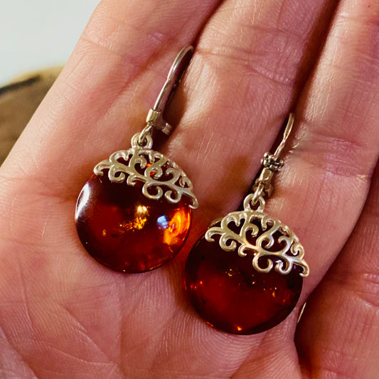 Sterling Silver Round Amber Earrings: Vitality and Grounding