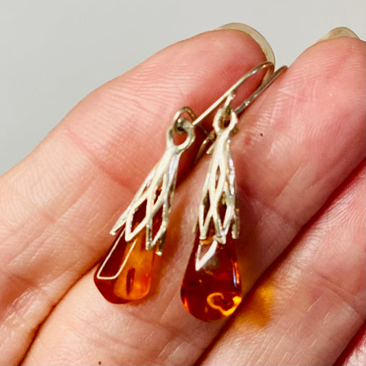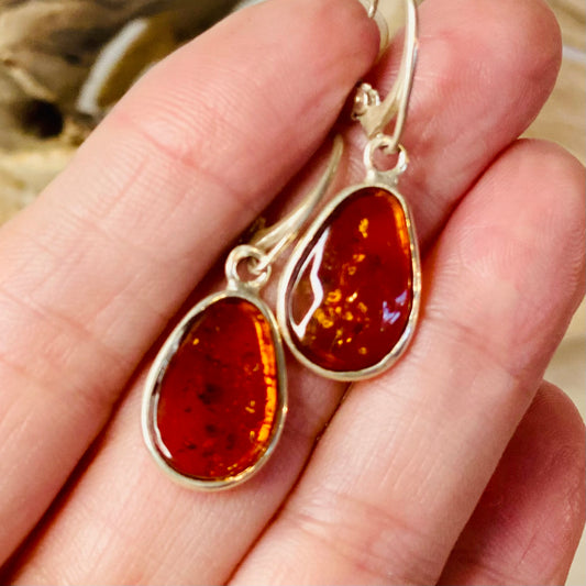 Sterling Silver Amber Stone Earrings: Ancient Healing Energies - Small