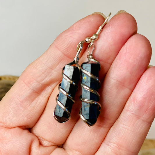 Grounding Energies: Shungite Spiral Earrings for Protection and Balance