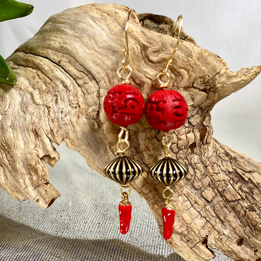 Spicy Chili Pepper Cinnabar Earrings
