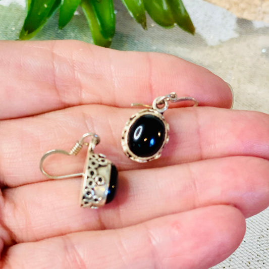 Sterling Silver Black Onyx Oval Earrings: Elegance in Onyx