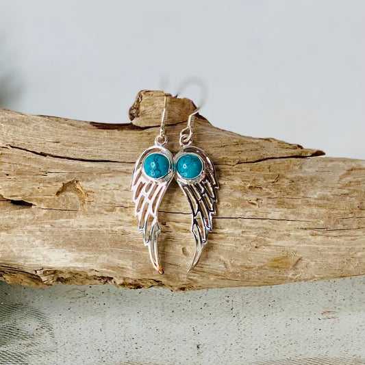 Spiritual Elegance: Sterling Silver Turquoise Angel Wing Earrings