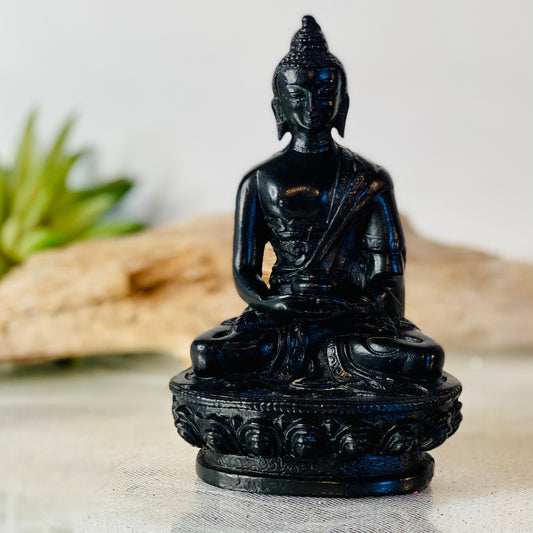 Sacred Serenity: Authentic Black Buddha Statue from Nepal with Healing Energies