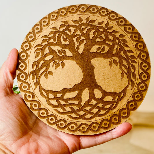Sacred Symbolism: Tree of Life Engraved Crystal Wood Grid