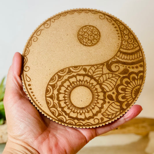 Harmony in Contrast: Yin Yang Wood Crystal Grid