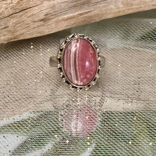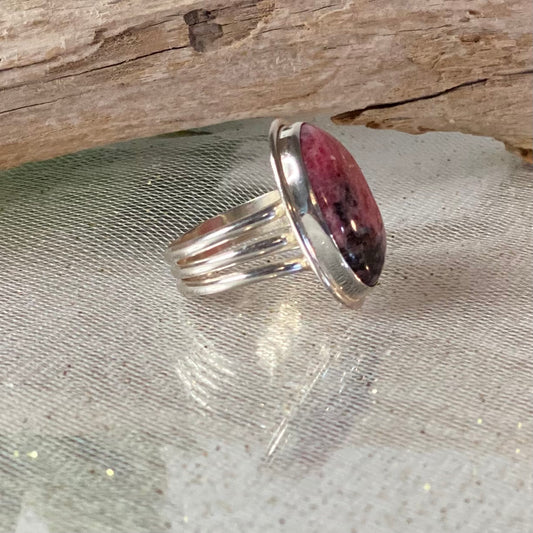 Elegance in Pink: Rhodonite Ring in Sterling Silver - Size 8.75