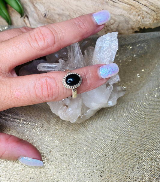 Black Onyx oval ring in sterling silver