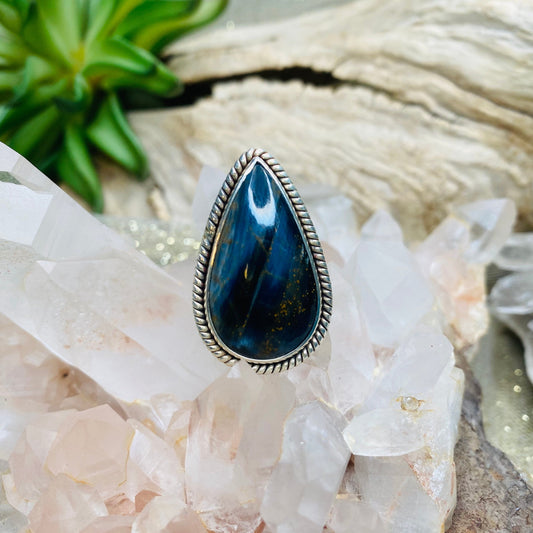 Pietersite Teardrop Rings in Sterling Silver | Unique Gemstone Jewelry