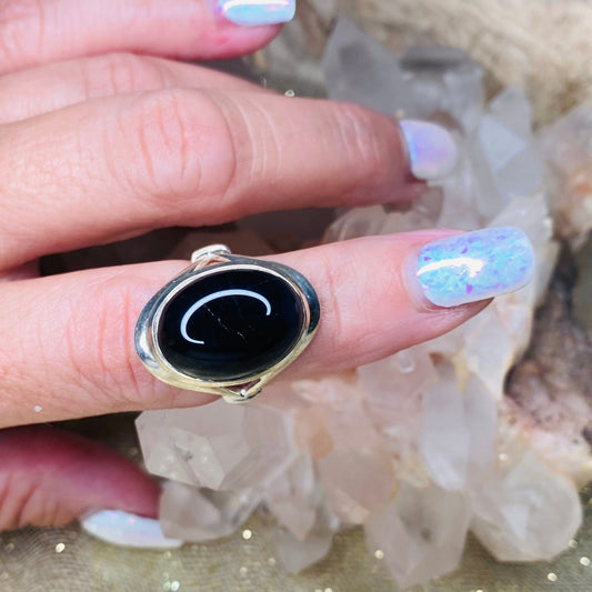 Black Onyx Sleek Ring in Sterling Silver | Elegant Protective Jewelry