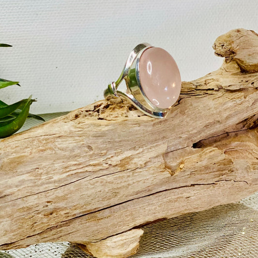 Serenity in Silver: Rose Quartz Crystal Ring - Size 7