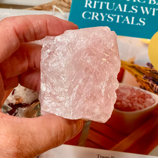 Serenity Spa Set: Rose Quartz Bath Ritual Kit with Raw Rose Quartz Chunk, Bath Salts & Book