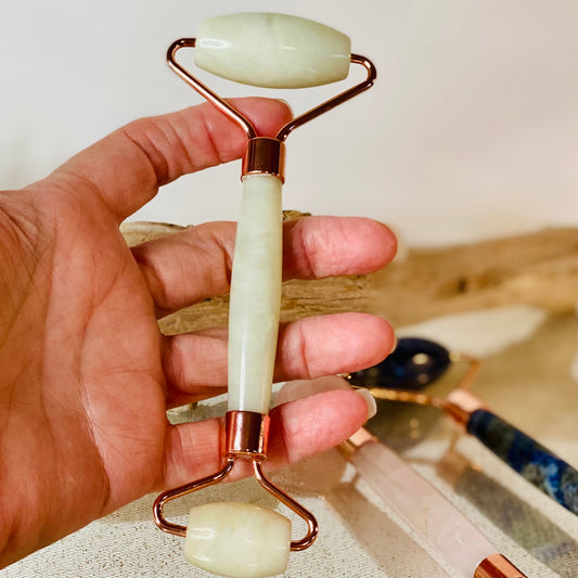 Elevate Your Skincare Routine with Crystal Facial Rollers in Rose Gold Trim