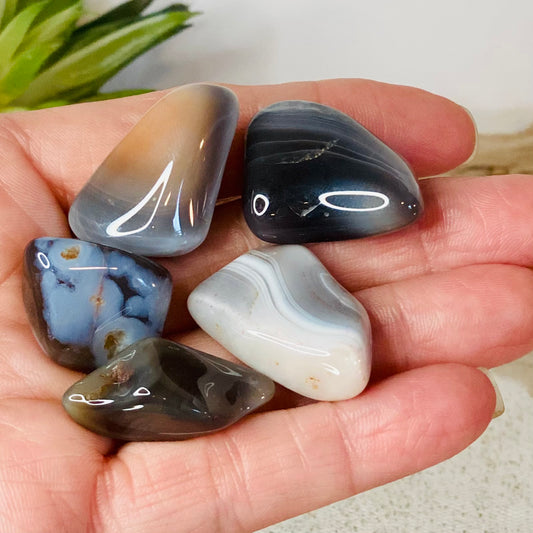 Grey Botswana Tumbled Stones: Tranquil Beauty with Grounding Energy