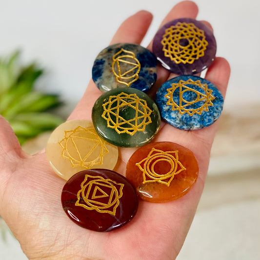 Engraved Crystal Chakra Meditation Set for Alignment & Balance