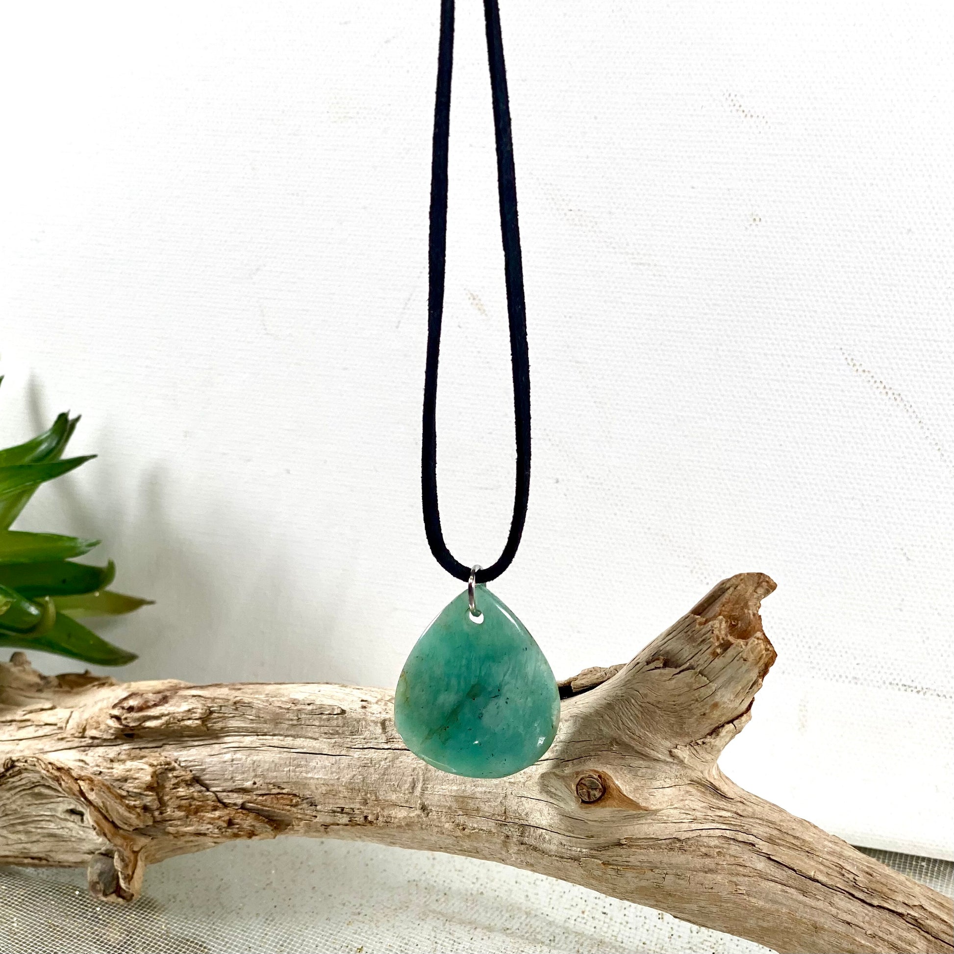 Amazonite Crystal Healing Pendant on Adjustable Suede Choker - Embrace Calm and Balance