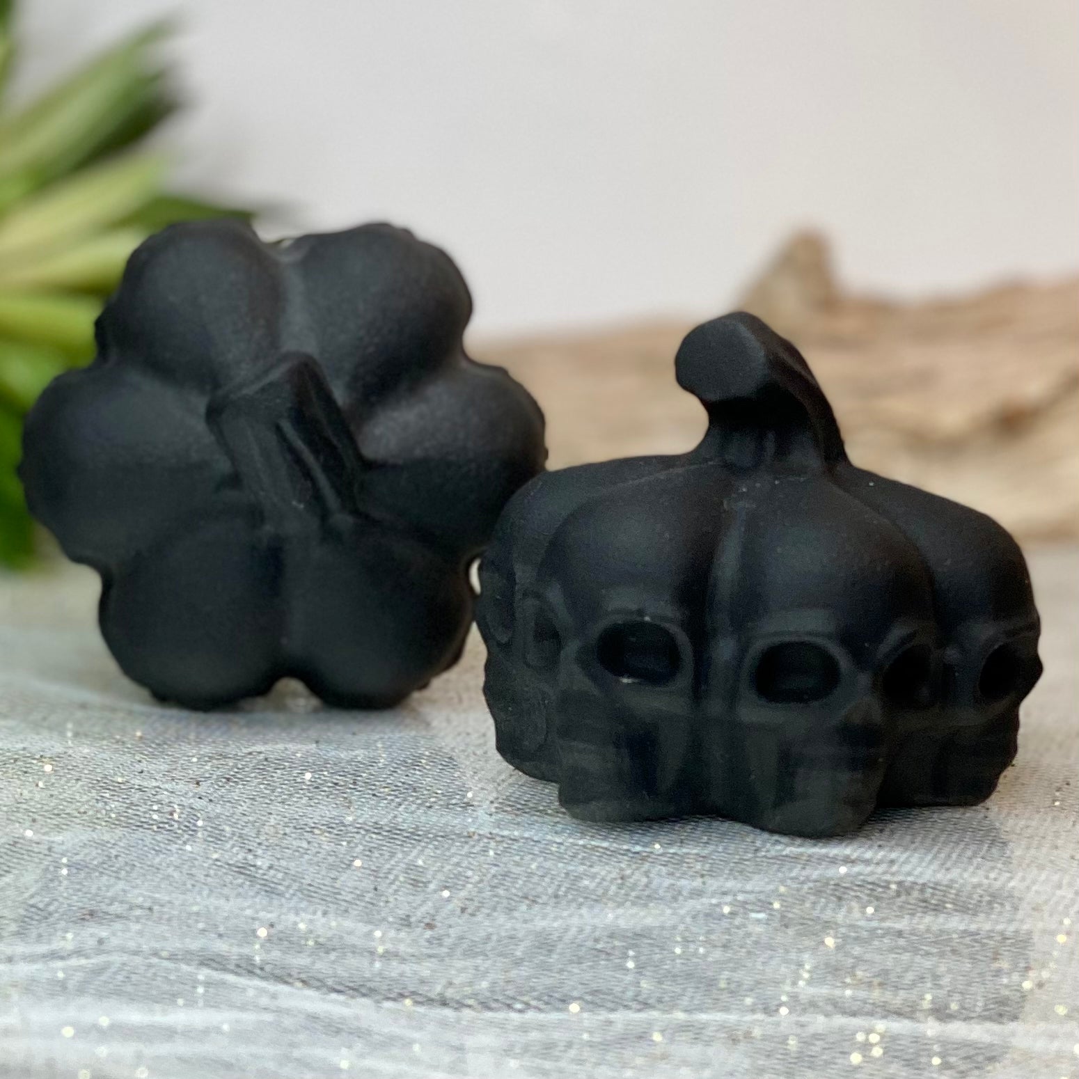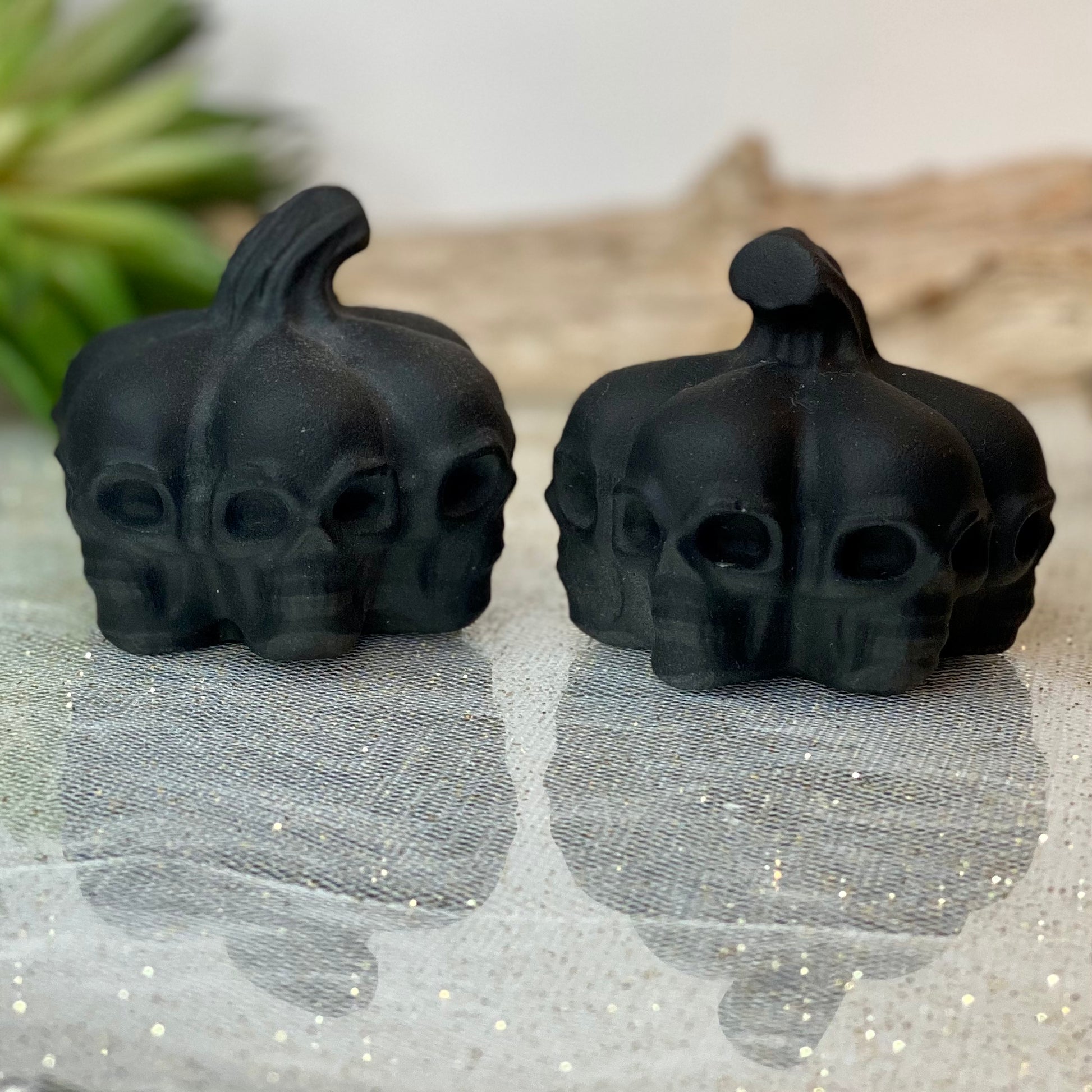 Black Obsidian Carved Skull Pumpkins: Unique Halloween Decor with Protective Energies