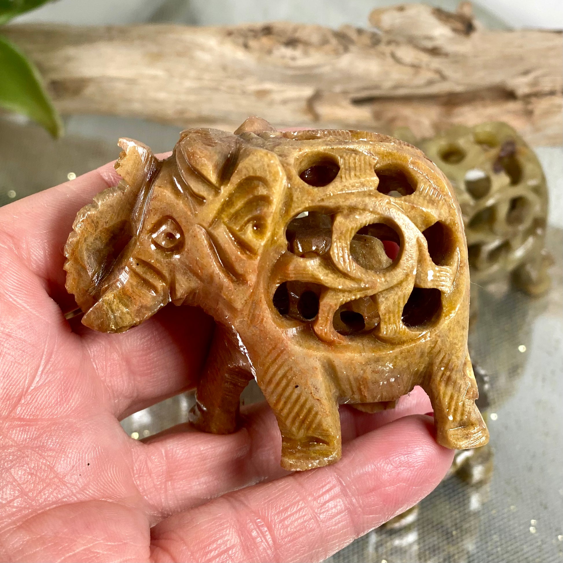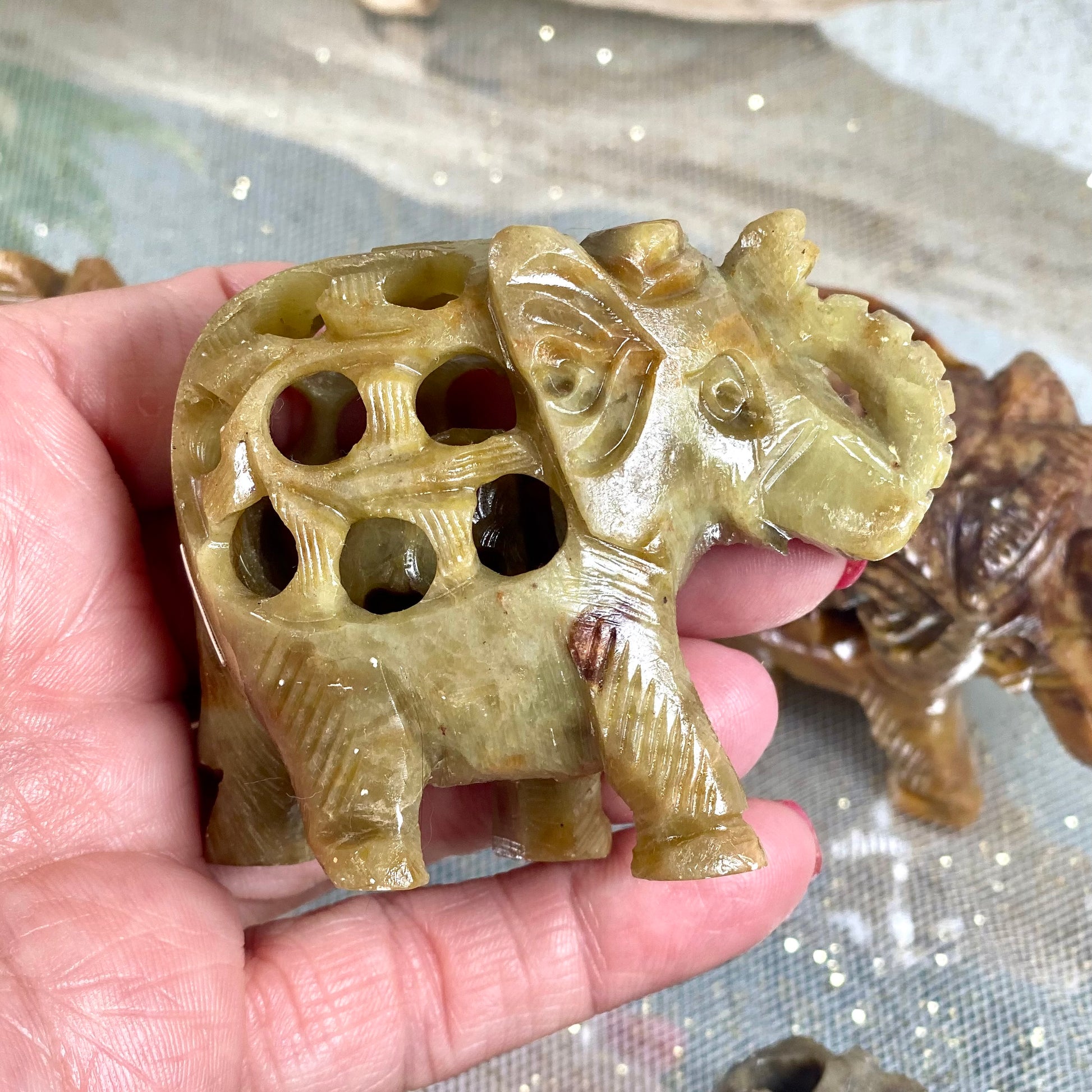 Intricate India Soapstone Elephant with Baby Inside for Peace and Calming