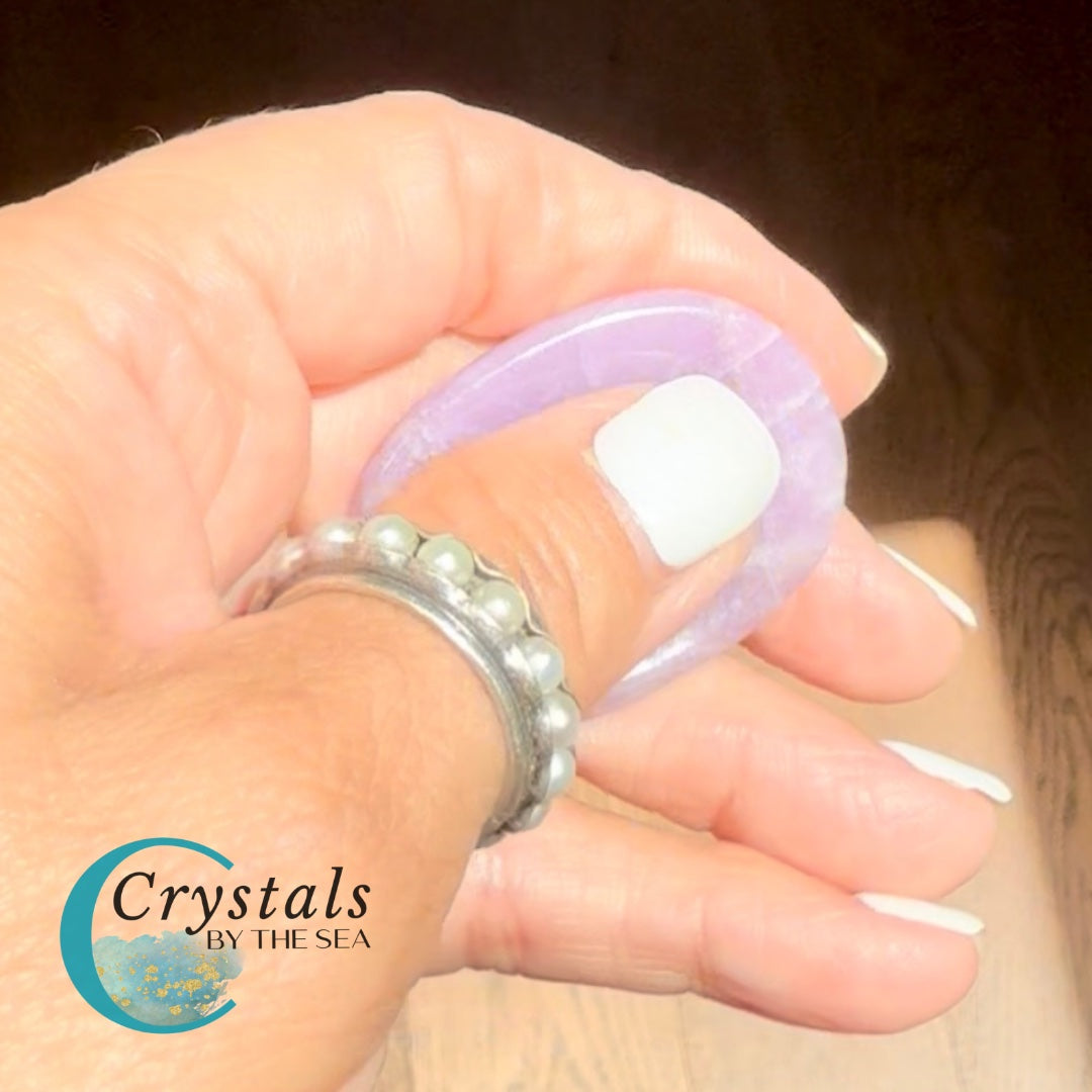 Lepidolite is rich in natural lithium, a mineral that has long been associated with mood stabilization. Its soft, lilac hues carry a peaceful vibration that can ease tension and invite serenity. When you rub the smooth surface of the stone, you’re not only connecting with its crystal energy — you’re also engaging your body’s natural calming response. This simple act of touch can help redirect nervous energy, slow the breath, and ground you back into your body.