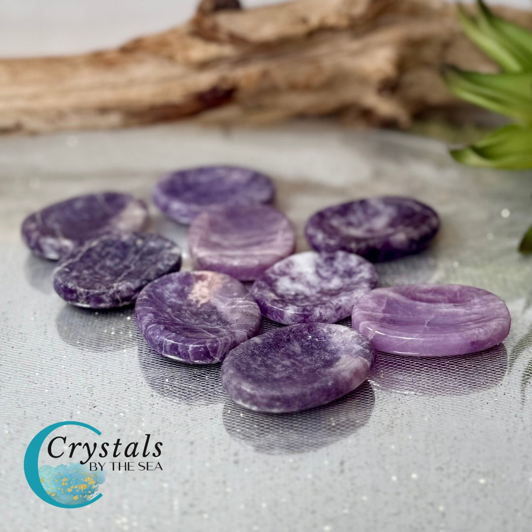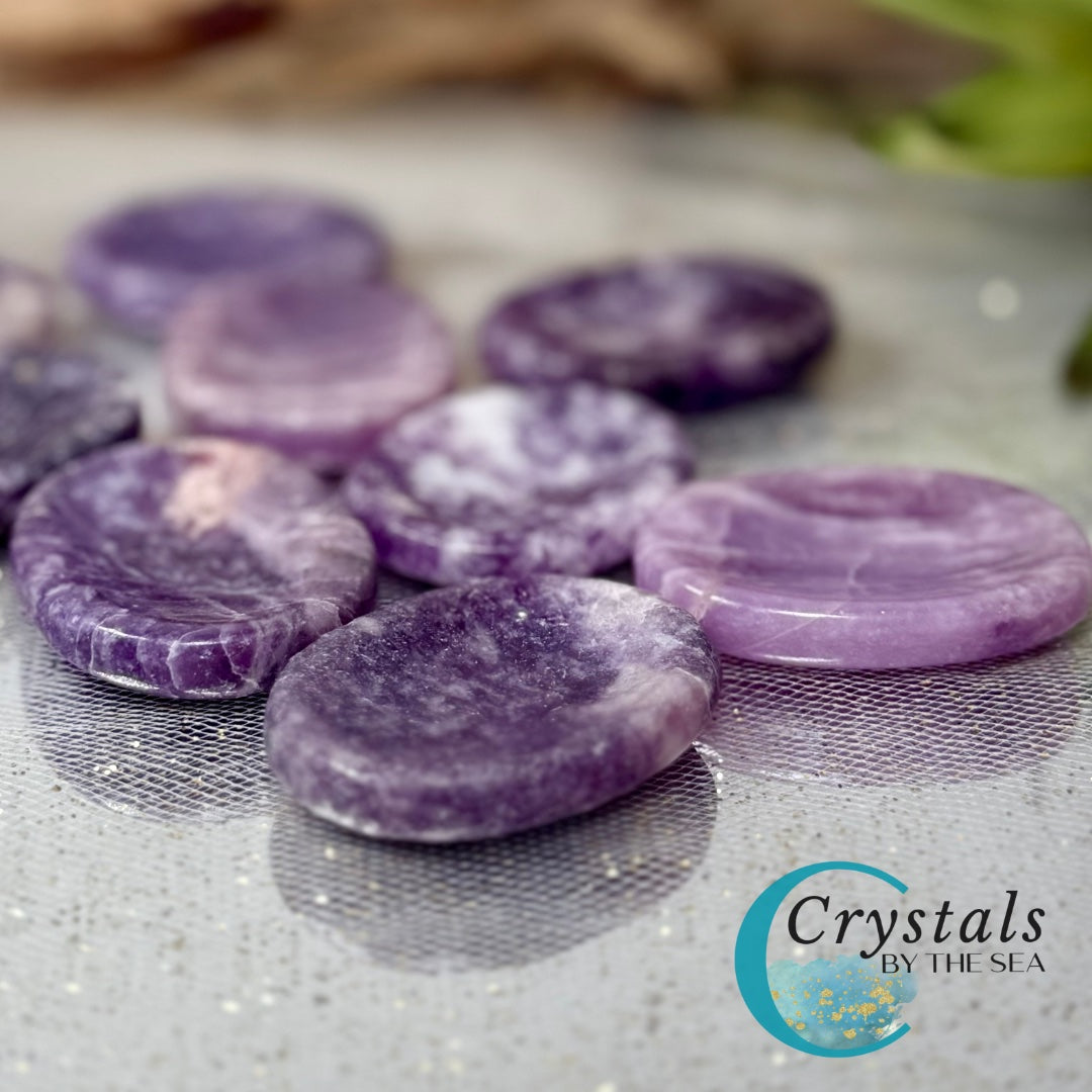 This listing is for one (1) Lepidolite Soothing Stone, approx. 1.25" x 1.50". Each stone is hand-picked, lovingly wrapped, and cleansed with white sage so it arrives ready for your use.