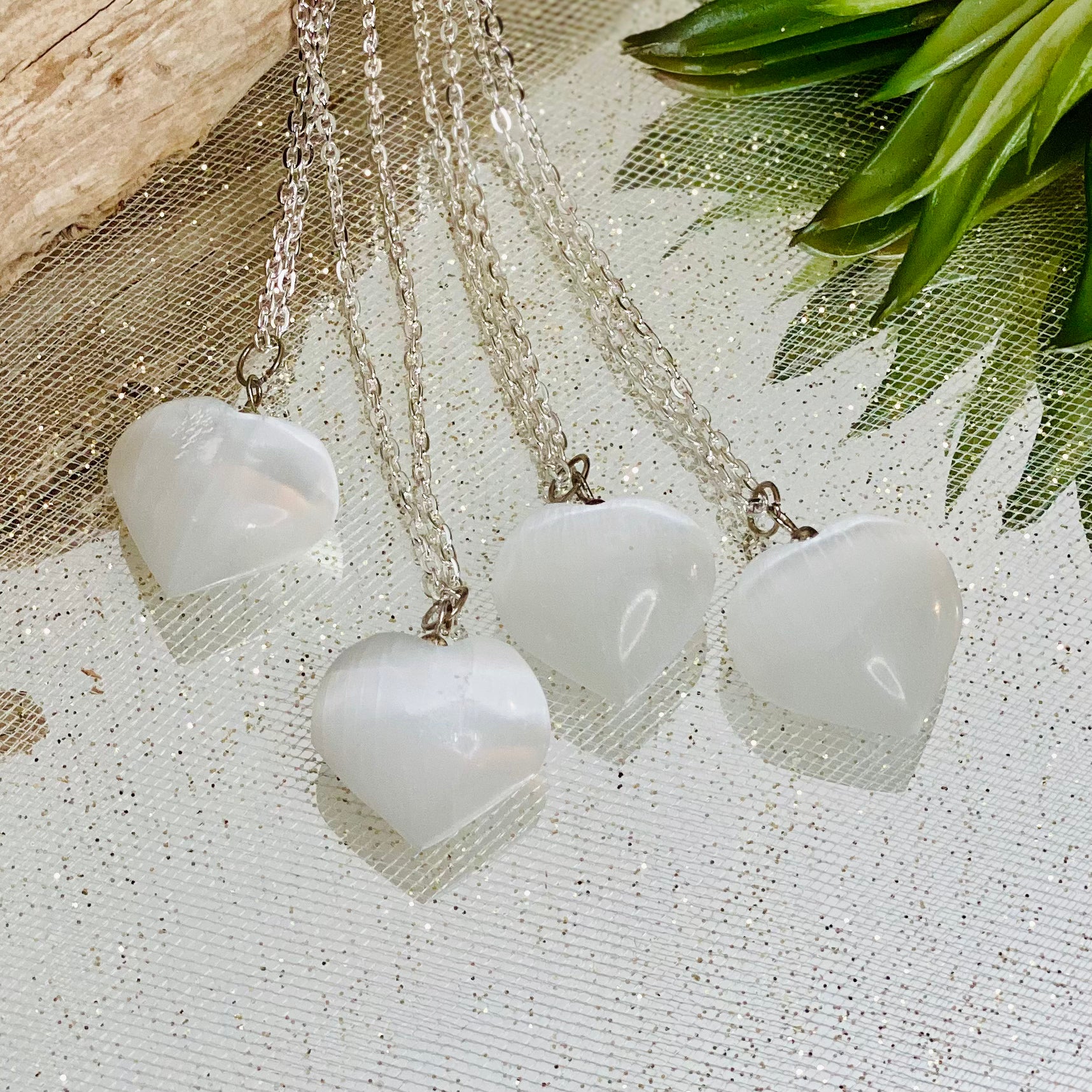 Wearing this crystal heart necklace allows you to carry the calming essence of selenite wherever you go, fostering a harmonious balance for your mind, body, and spirit. Embrace the serene beauty and healing energy of "Serenity in Selenite," making it a meaningful addition to your crystal collection.